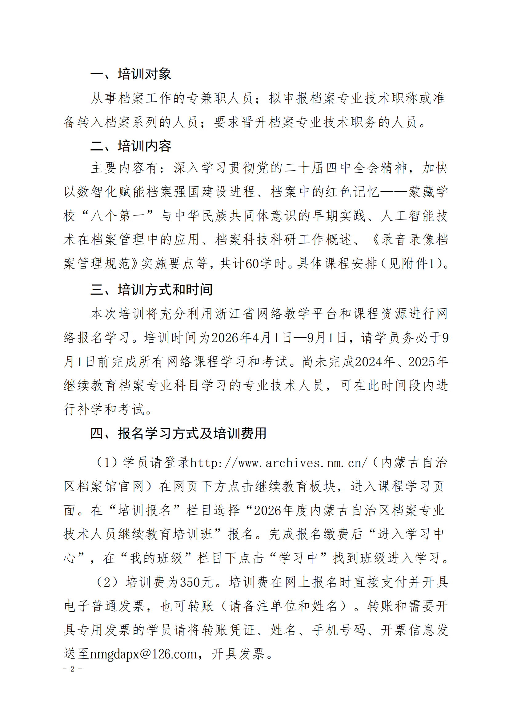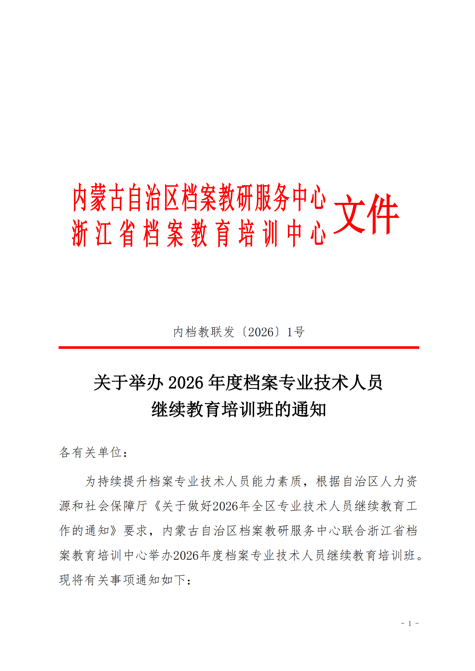关于举办 2026 年度档案专业技术人员继续教育培训班的通知