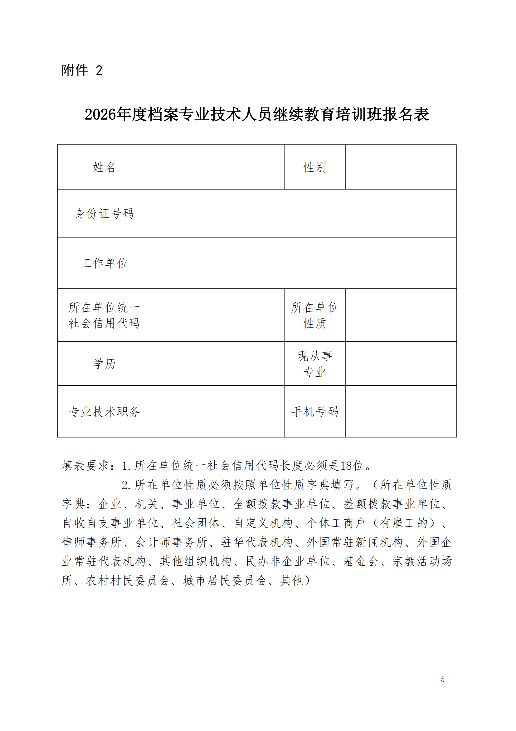 2026年度档案专业技术人员继续教育培训班报名表.docx